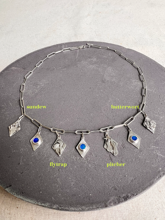 Carnivorous Plant & Opal Charm Necklace