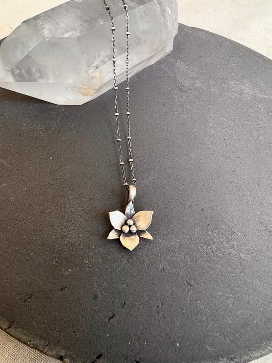 Trillium Flower Charm Sterling Silver Necklace 18"