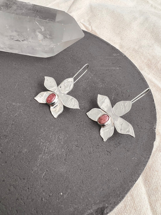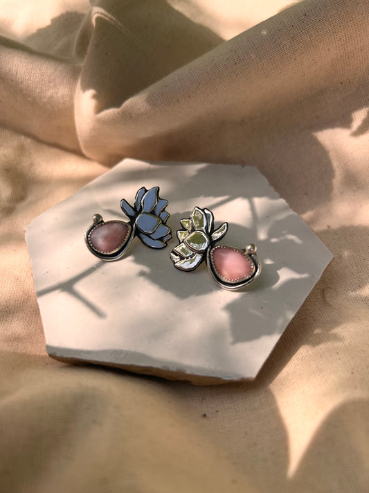 Faceted Pink Opal Lotus Bloom Stud Earrings