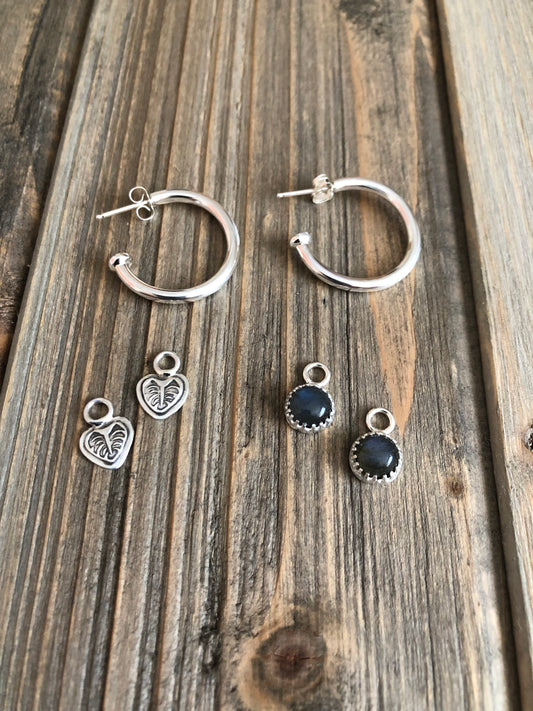Sterling Silver Hoops with Charms - Monstera Leaf & Labradorite
