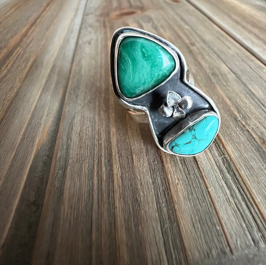Royston Turquoise Sterling Silver Ring, Thick Textured Band, Size 10